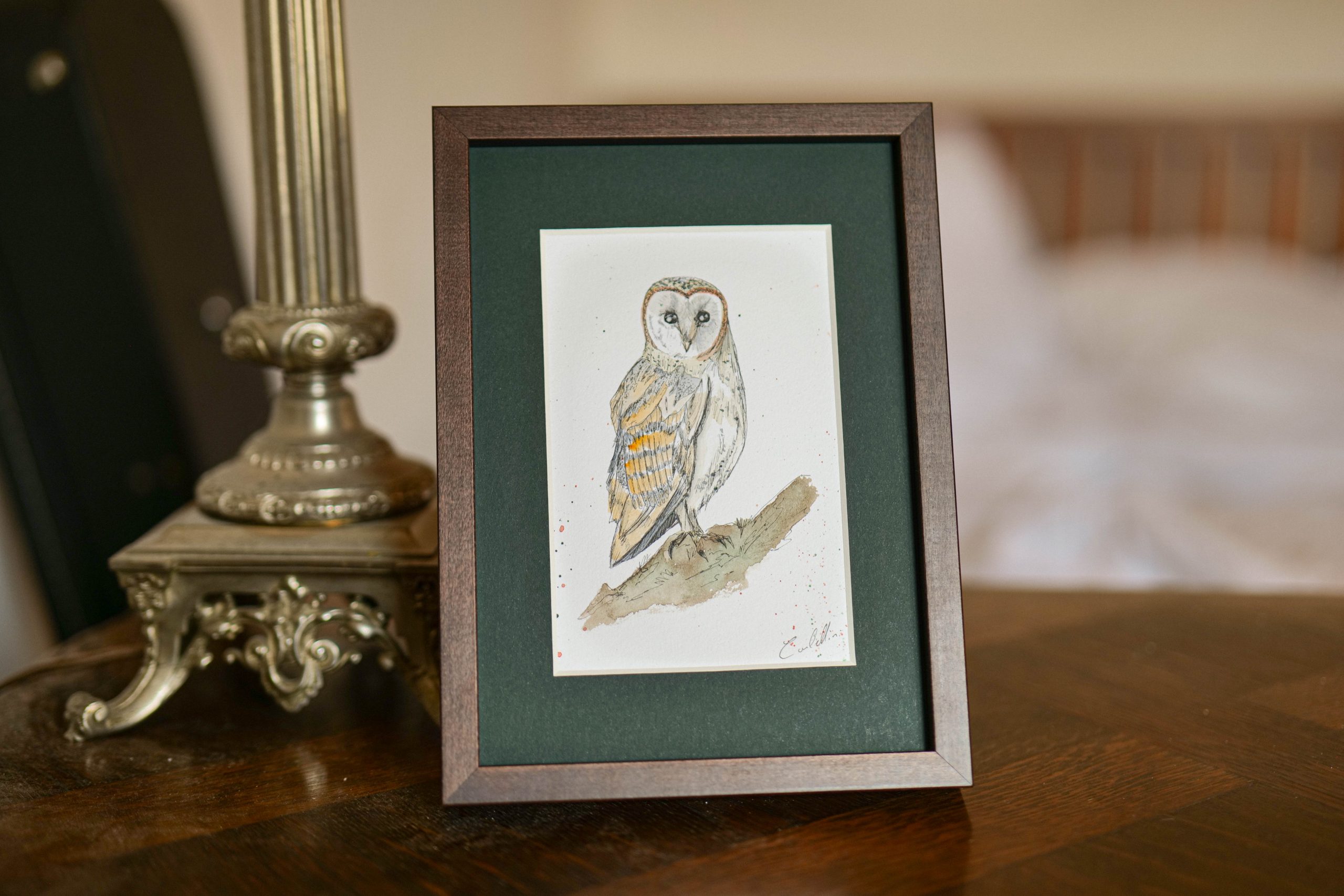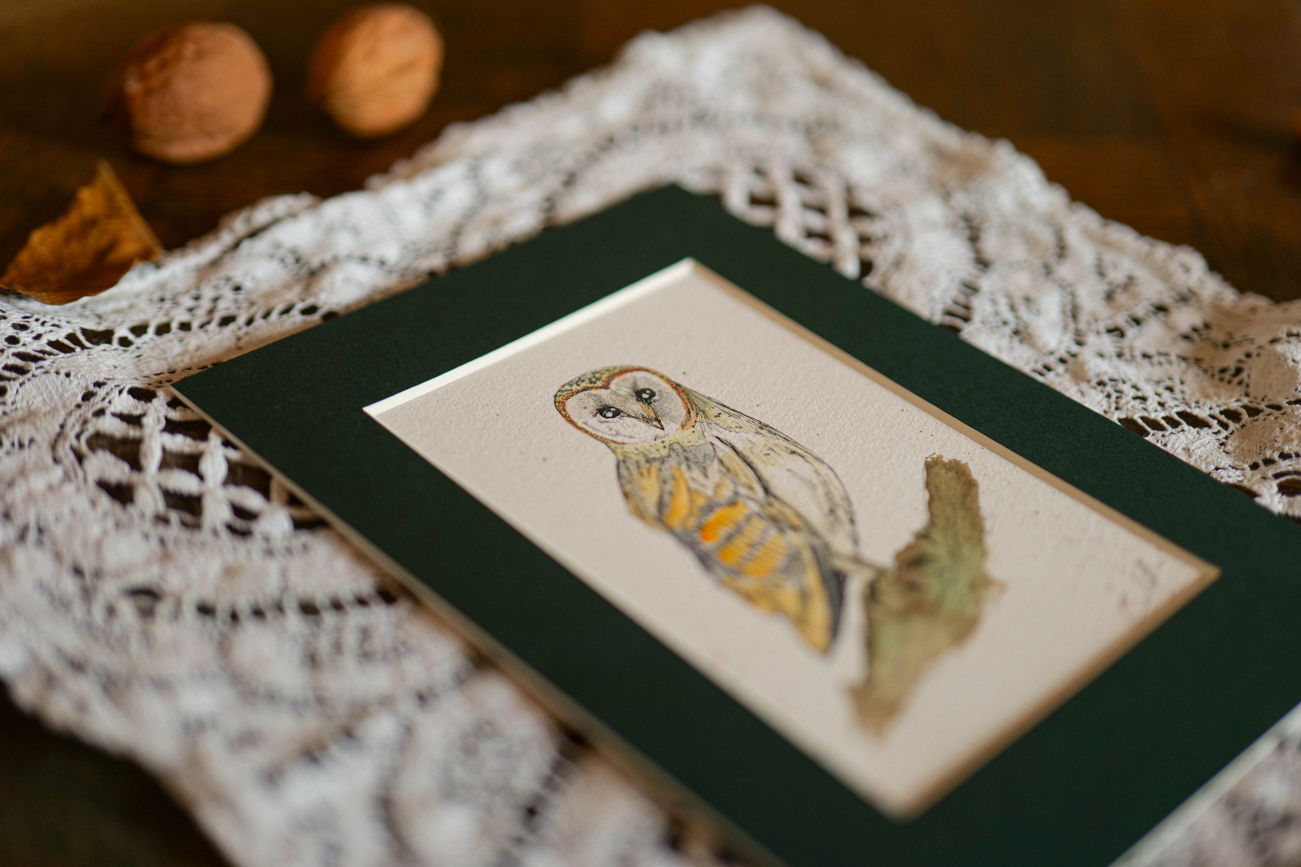 En choisissant cette aquarelle de la chouette, vous invitez dans votre espace une présence nocturne, mystérieuse et poétique, immortalisée dans l’eau et la couleur.